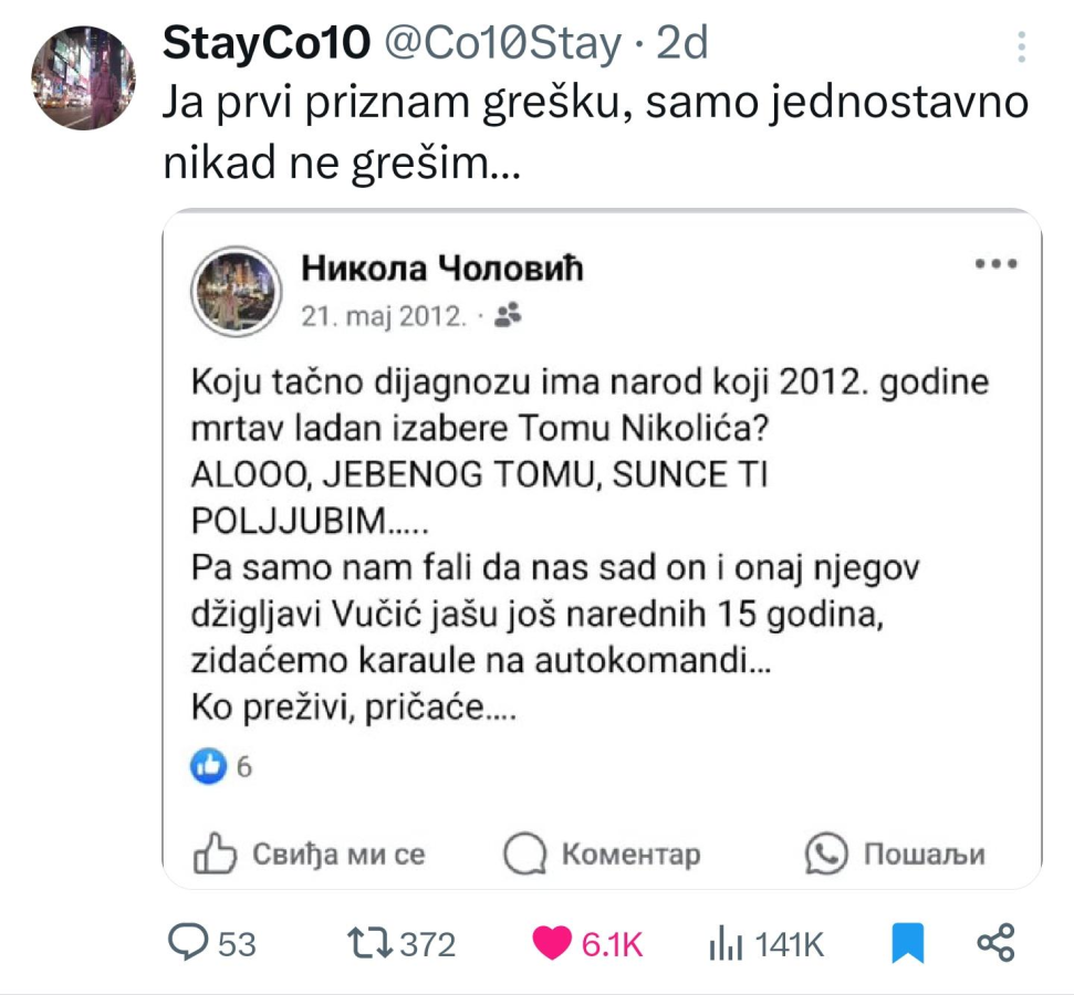 Какво идиотско резоновање. Сами од вучића праве мање зло.