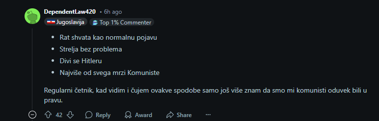 Evo na sta sam samo danas natrcao. I obrnuto, ako neko ne obelezi cetnike kao nase ustase ide u minus beskonacno skor.