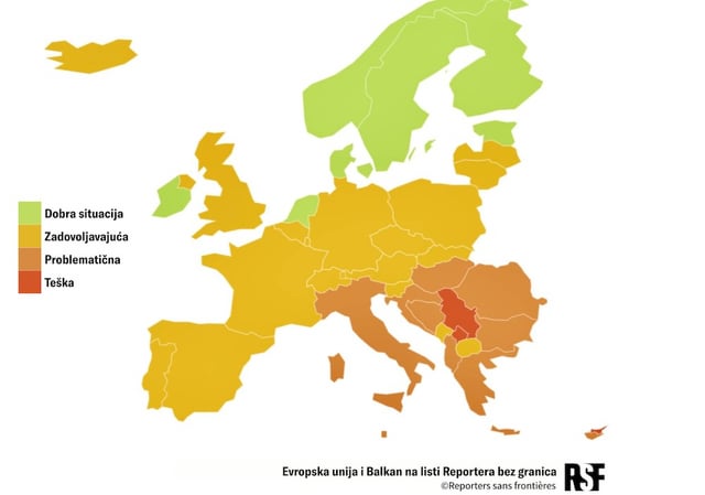 Srbija se nalazi na 96. mestu godišnje liste Reportera bez granica. To je napredak u odnosu na prošlogodišnje 98. mesto,