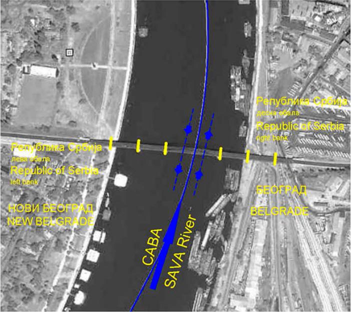Ovde vidite da se da se stari stubovi (S) i novi stubovi mosta (C), uopšte ne poklapaju po poziciji. To je, koliko ..., pet kesona do dna reke, bez vode u njima? Dubine bar ( obala - dno reke ) 74 - 58 mnv =