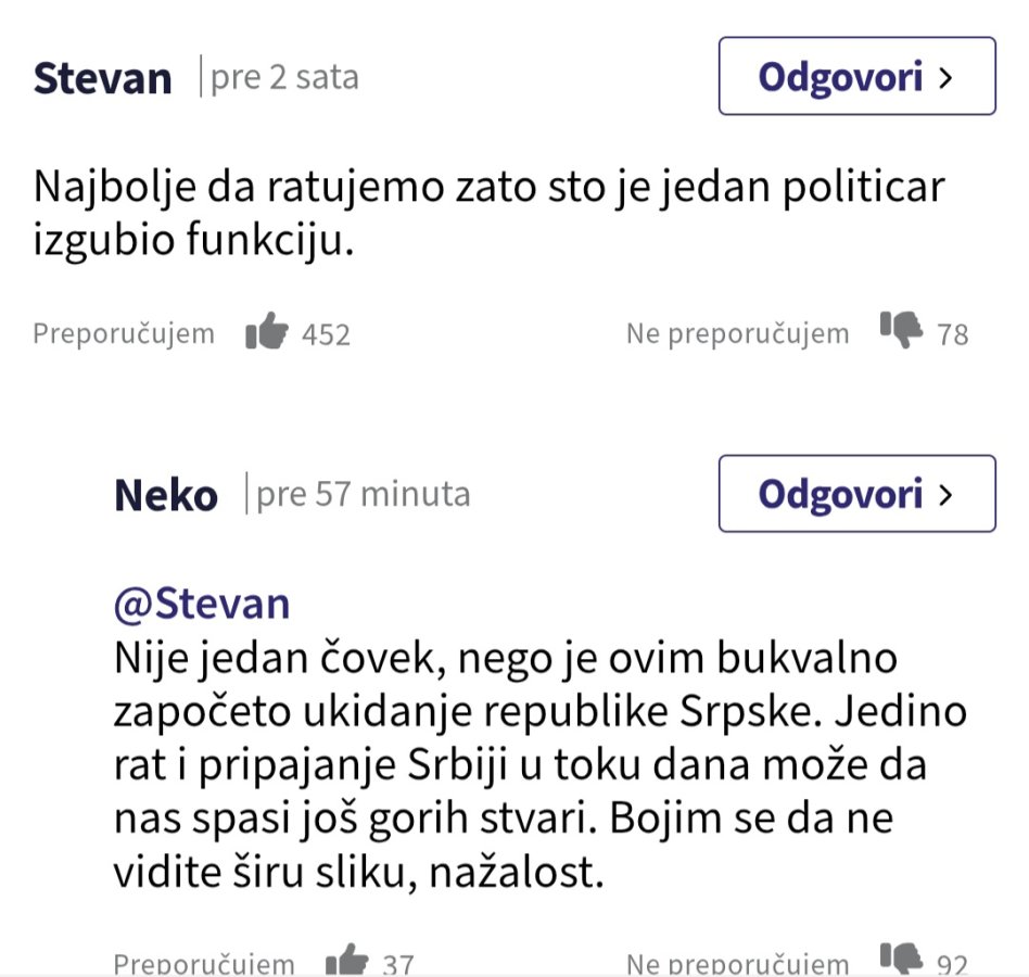 Provalija između sve veće kontrole medija, veće cenzure i savršenstva propagandnih tehnika sa jedne strane, i sva manjeg nivoa pravog obrazovanja i opštih znanja, je postala toliko velika da više nema potrebe da se pretvaraju kao ranije. Ranije je ipak bilo donekle bitno šta će od činjenica birači znati. Rat u Ukrajini je međutim konačno dokazao da to više nije toliko važno. Neke od osnovnih teza o njemu, u koje većine ipak veruje, su skoro i bukvalno apsurdne. Tako je sada najzad postalo moguće da se birači ubede da o istim činjenicama misle bilo šta što manipulatori smatraju da birači o njima treba da misle. Dve potpuno suprotne stvari ako treba. Čak jednog dana jedno, a već sledećeg dana sasvim suprotno iako se činjenice nisu promenile. Zato sam citirao Orvela. Postalo je vrlo slično opisu u ona dva odlomka iz 1984. Čovek je bio prorok.