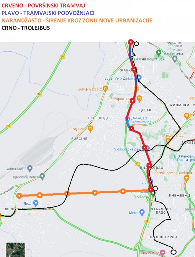 4. Produženje od Ustaničke je uslovljeno predlogom da se Gročanska naselja oslone na linije BG: voza koje sam predložio, označene kao linija 7 i linija 8. A što je uslovljeno postojećom i planiranom prugom.
