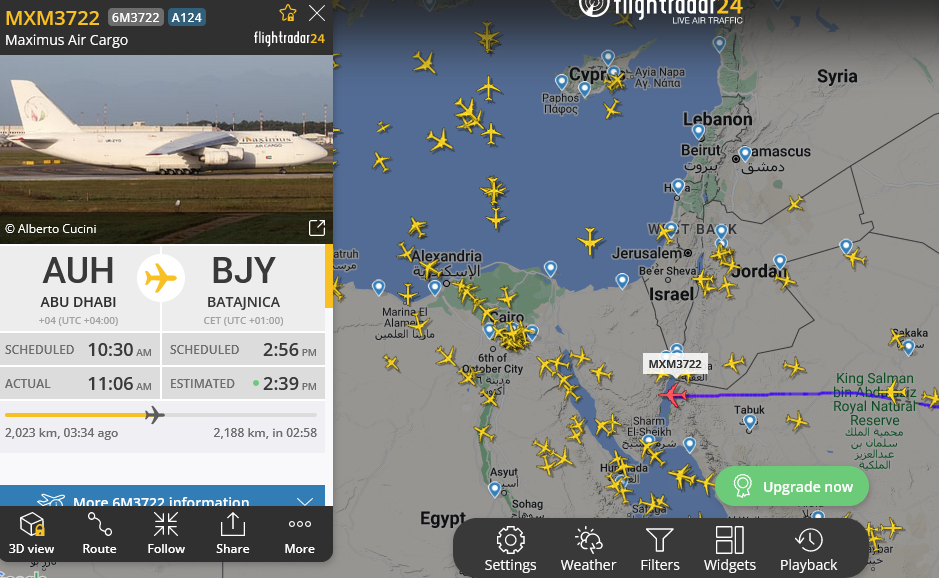 View flight 6M3722 from Abu Dhabi to Batajnica on Flightradar24