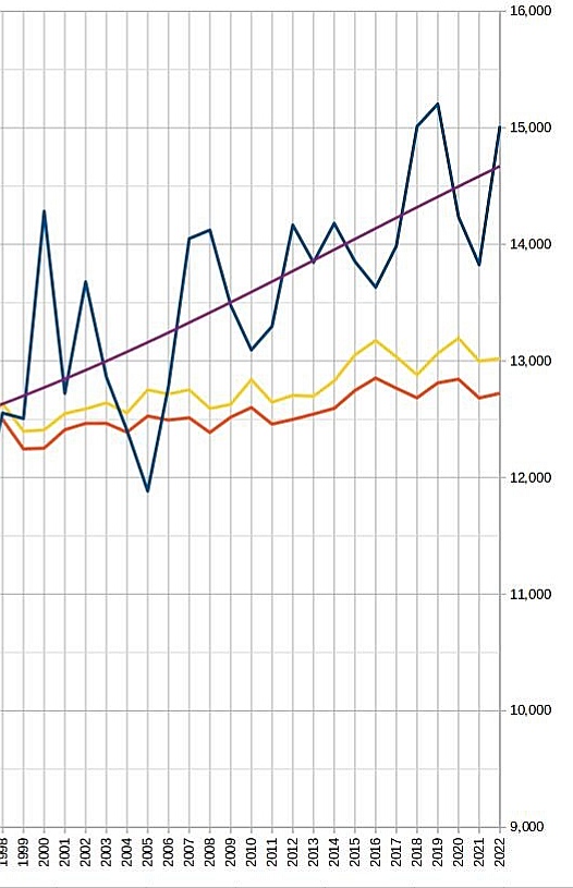 Mene prvenstveno interesuje "vreme u kojem živimo", tj. od 2.000g. jer tada je počela drastična "anomalija" sa prosečnom temperaturom od 14°. Ubrzo smo preskočili i 15°, pa bi mogao da napraviš dijagram Trećeg milenijuma, jer ovako nije baš pregledno :