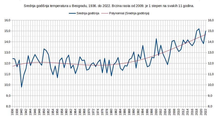 U Beogradu temperatura raste otprilike 3 puta brže od globalnog proseka, i taj odnos je stabilan i predvidiv već 20 godina!