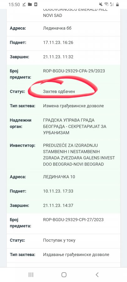 Nije obustavljeno to je prethodna, u isto vreme su podneli zahtev i za novu i za izmenu stare. Logicno da je ova obustavljena kad treba izmena koja je odbijena