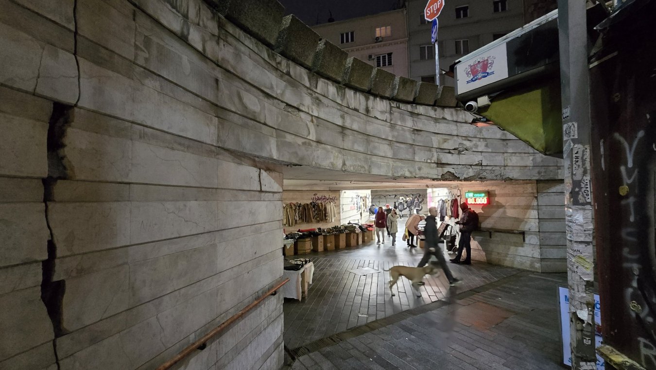 Na ulasku u podzemni prolaz kod Zelenog venca građevinska inspekcija postavila je juče trake upozorenja zbog opasnosti od obrušavanja zida. Međutim, one su u me